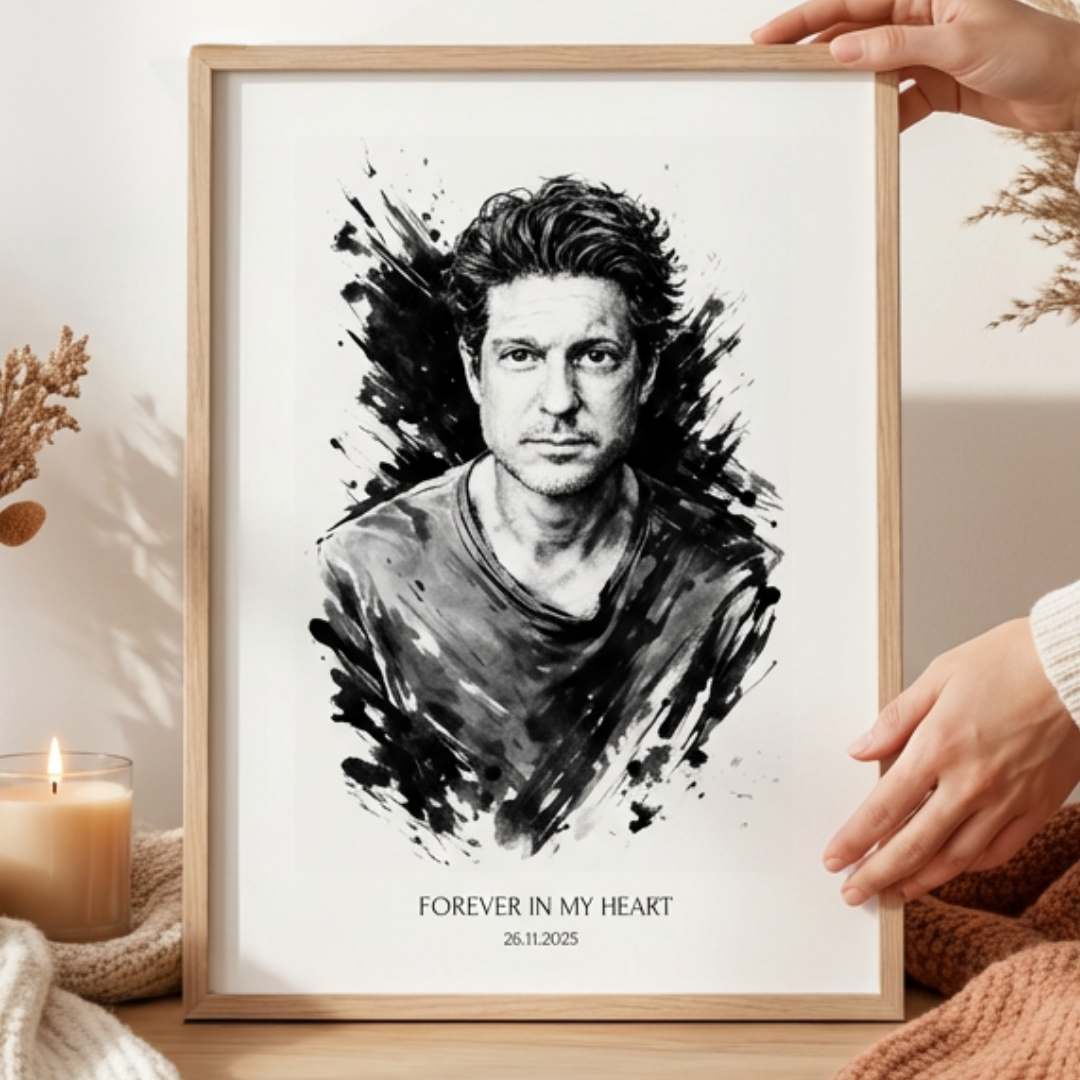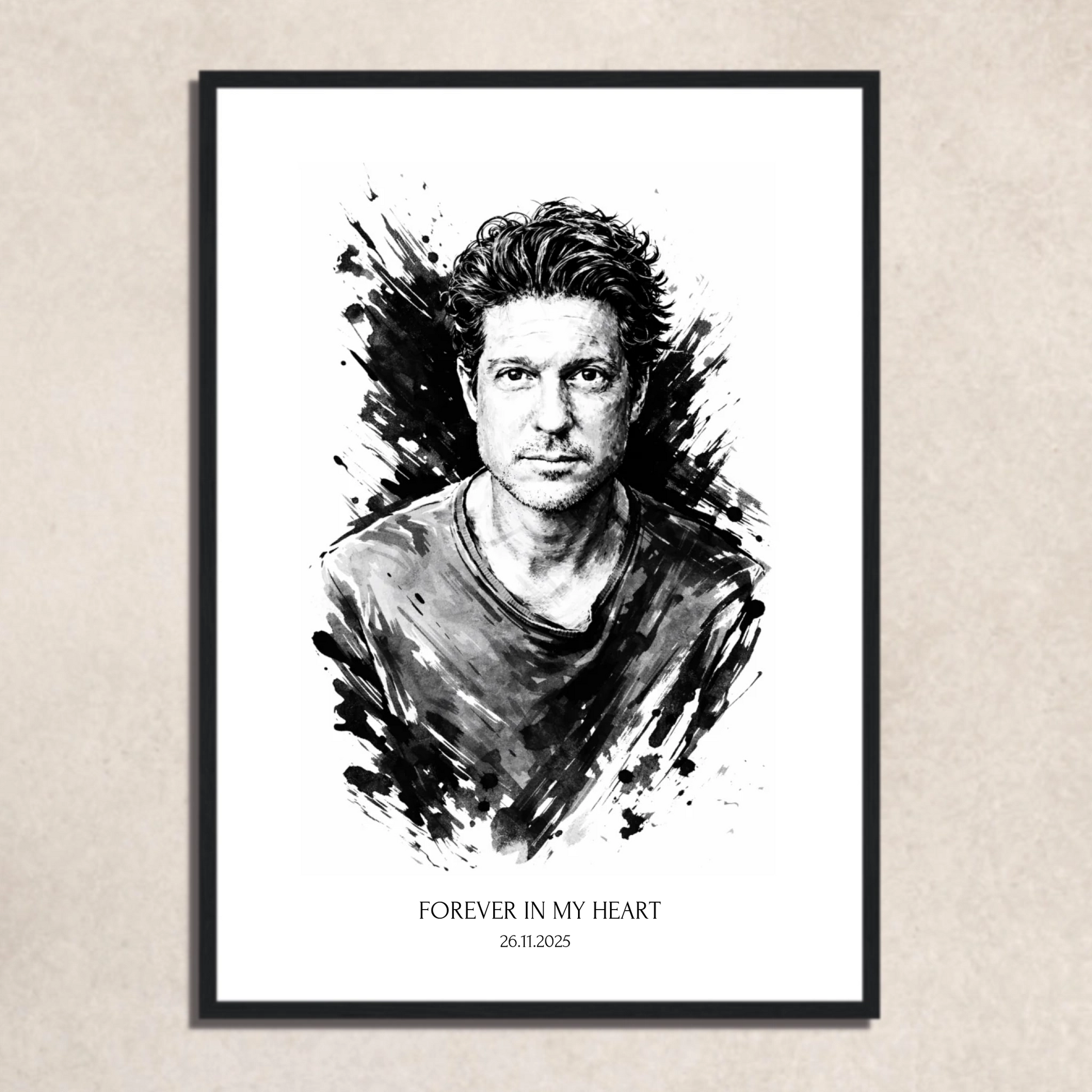 FOTO-POSTER TUSCHE ZEICHNUNG mit Deinem Bild & Slogan personalisiert